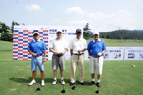 2008年9月23日,“08-09年度中信银行白金卡‘36+1’高尔夫球巡回赛”第三站赛事在上海成功举办,中信银行信用卡中心马劲松副总裁、上海分行零售银行部孙伟青总经理、客户代表王志文先生出席了此次赛事,并担任开球嘉宾。此外,共有65名中信白金卡客户参加了此次巡回赛。