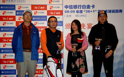 2008年10月24日,金秋十月的北京天空格外蔚蓝,08-09年度中信白金卡“36+1”高尔夫球巡回赛――北京站在北辰高尔夫球会打响。这是本项赛事自7月份升级以来的第四站比赛,也是相隔三个月后再次回到首都举办。 122位中信银行白金卡客户参加了本站比赛,共同角逐包括总杆冠、亚、季军、净杆冠、亚、季军、最具潜力奖、最佳射手奖等近20个奖项。