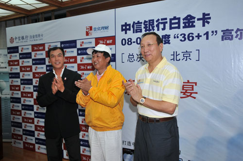 08-09年度的中信白金“36+1”高尔夫服务于08年6月在北京全面升级,宣布了新推出了中信白金“36+1”高尔夫球巡回赛的信息。自此,中信白金“36+1”巡回赛先后转战天津、上海、杭州、北京、武汉、广州、东莞、福州、南京九个重点城市举行分区赛,受到众多当地及举办地周边的中信白金客户的热情参与和好评,同时也吸引到了王志文、冯小刚、何平等社会知名人士积极参赛。经过将近一年的分区巡回赛,2009年5月26日,中信白金“36+1”高尔夫球巡回赛终于迎来了年度总决赛。
