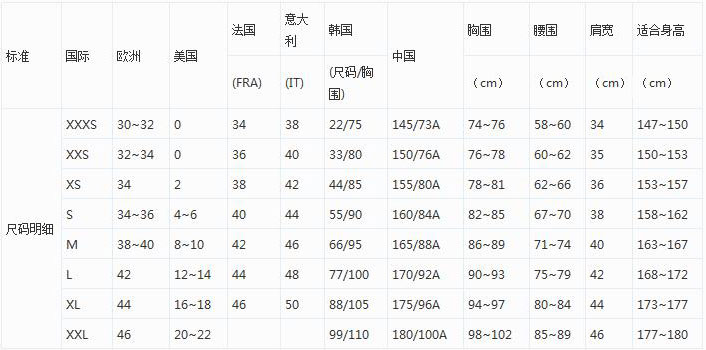 女装上衣尺寸