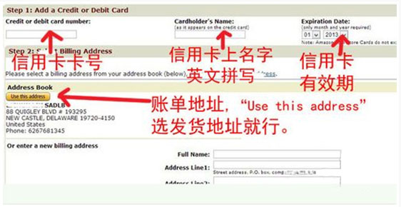 STEP4 然后添加支付方式,信用卡信息只需要信用卡卡号、持卡人姓名(英文拼写)、卡的有效期,按真实填写,要特别注意避免信用卡信息外泄。