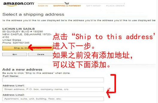 STEP5 点击收件人地址“Ship to this address”(也就是之前在二-3步骤添加的地址)。